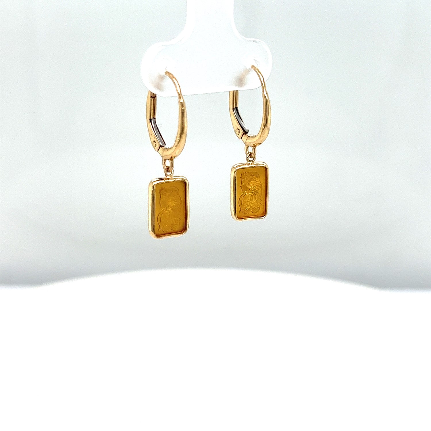 pair of 24kt 1 gram gold bar made into dangle earrings bringing fortune wherever you go
